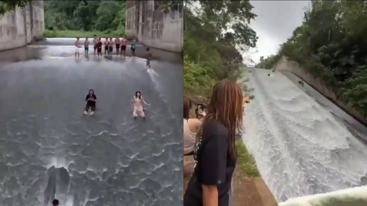 Местные жители острова Минданао на Филиппинах используют водосброс на плотине Агусан как водную горку! Видео показывает веселые моменты, когда дети разных возрастов спускаются по струям воды с удовольствием и смехом.
