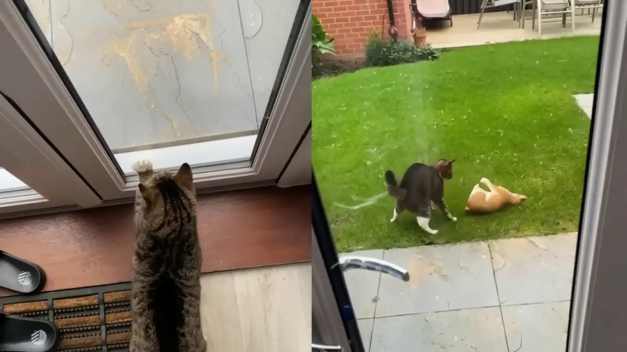 Когда хозяин выпустил своего кота на улицу, тот немедленно напал на глиняного собрата, который стоял во дворе. Вероятно, кот воспринял статую как живого соперника, готового к схватке.