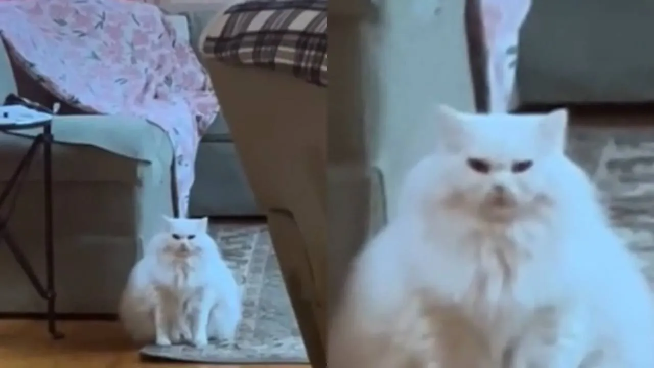 Снегокот из этого видео, кажется, был не очень дружелюбно настроен к человеку. Он сидел посередине комнаты и грозно смотрел в сторону людей. К счастью, чтобы задобрить этого пушистого, не нужно идти на большие жертвы. Достаточно лишь купить много кошачьих вкусностей, свежего тунца и новую мягкую лежанку.