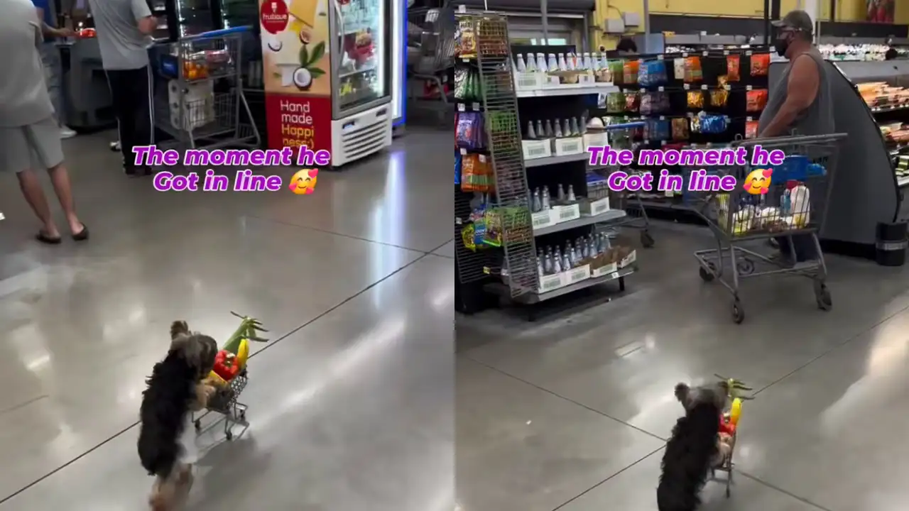 В этом видео мы наблюдаем, как крошечный песик с огромной решимостью толкает впереди себя тележку с продуктами. Маленькие лапки едва справляются с тяжестью, но собачка не сдается. Она весело бежит по магазину, привлекая внимание покупателей, которые не могут сдержать улыбок.