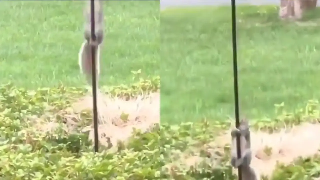 Женщина решила защитить кормушки для птиц от хитрых белок. Она намазала шест кормушки маслом, создавая скользкую преграду для воришек.