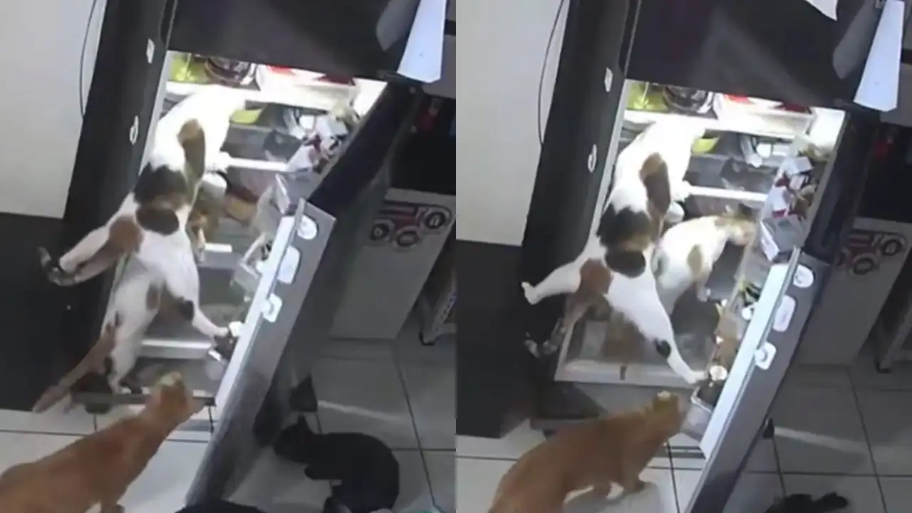 Банда пушистых грабителей: женщина никак не могла понять, кто опустошает ее холодильник. Установила камеру и обнаружила, что ее коты научились работать в команде и открывать дверцу.