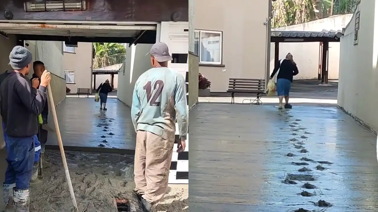 В этом видео женщина зачем-то проходит по свежезалитому бетону на стройке, вызывая недоумение у строителей. Их реакция полна удивления и растерянности: они не понимают, зачем она это делает и как могла не заметить свежую работу.