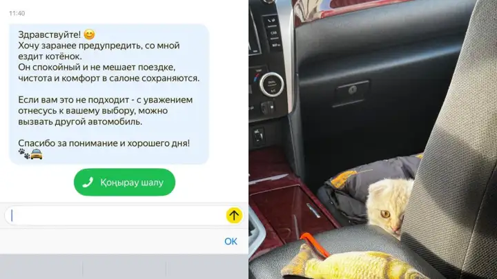 Тариф котокомфорт: в Казахстане таксист работает с очаровательным попутчиком
